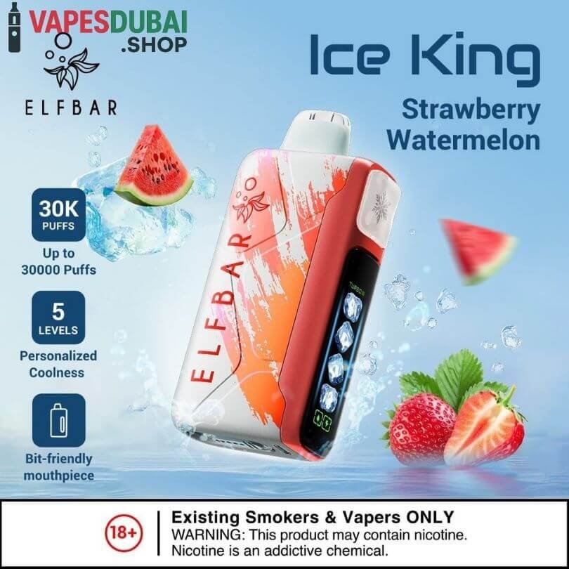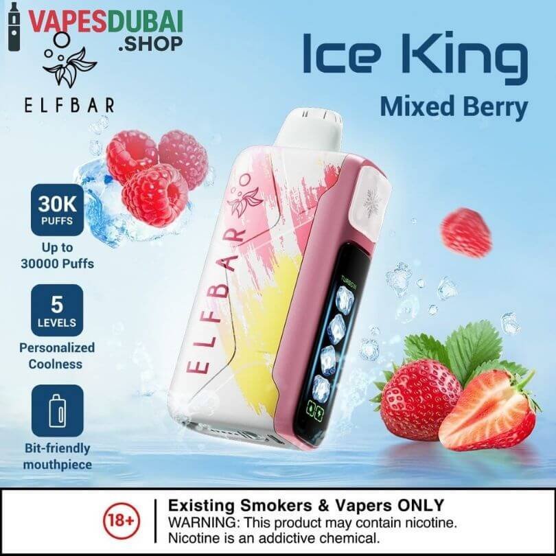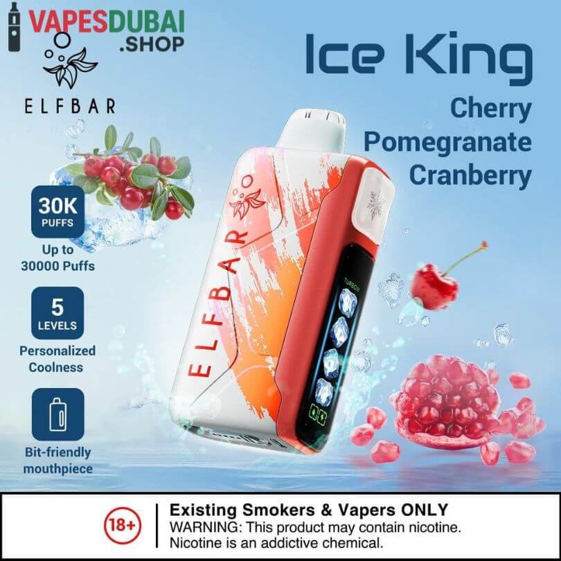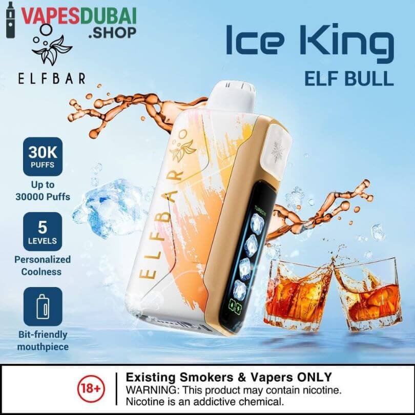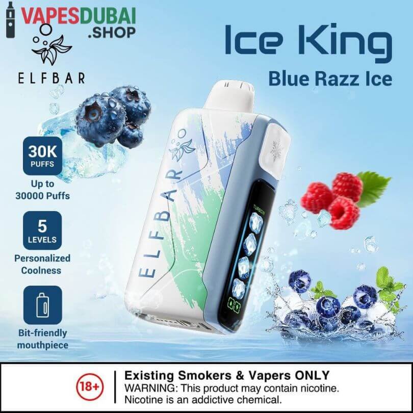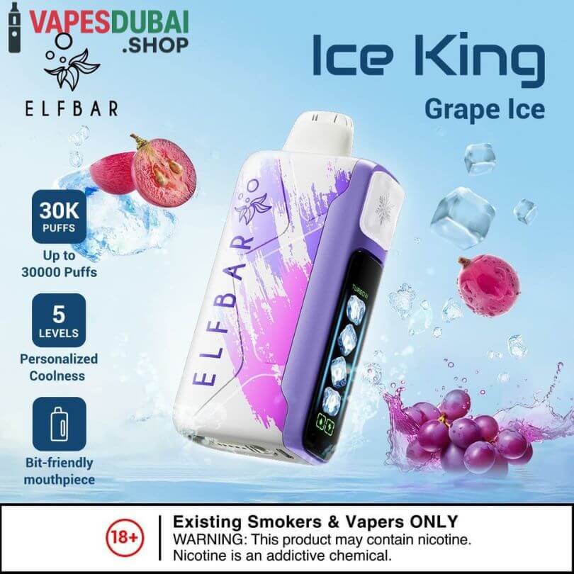 The ELF BAR Ice King Disposable Vape is a powerful, long-lasting, and flavor-packed device. Its 30,000-puff capacity, rechargeable 850mAh battery, adjustable power modes, and extensive flavor range make it suitable for all types of vapers. Ergonomic design ensures comfort, and dual mesh coil technology delivers consistent, smooth vapor. Fully compliant with UAE regulations, Ice King offers a safe, reliable, and convenient vaping experience.
